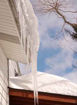 Ice damming happens when gutters get clogged with ice and often large icicles form. This can damage the gutters and cause water to leak into the eaves. Ice damming is usually the result of poor insulation or ventilation.
